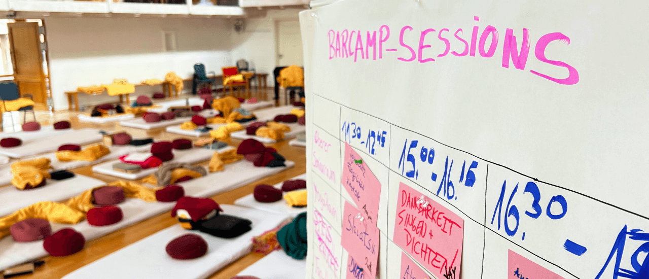 Im zweiten Teil unseres Retreats laden wir dich ein, deine Erfahrungen, Ideen und dein Wissen mit der Community zu teilen. Du hast die Möglichkeit, einen kurzen Impuls zu geben (ca. 15 Minuten) und zu zeigen, wie dich ein bestimmter Ansatz – theoretisch oder praktisch – inspiriert oder verändert hat. Ob durch eine Übung, Körperarbeit, kreative Methoden oder ein Dialogformat: Teile gerne das, was dich bewegt oder zum Nachdenken gebracht hat. Dafür bieten wir den Rahmen eines Barcamps.
